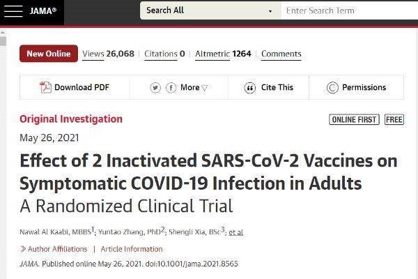 发表在《美国医学会杂志》上的这项研究覆盖来自阿联酋、巴林、埃及和约旦的40832名志愿者。他们被平分为三组,注射两剂疫苗或者安慰剂。第二剂疫苗注射两周后,注射了疫苗的志愿者中没有一名出现严重症状,而注射安慰剂的志愿者有两名出现严重症状。