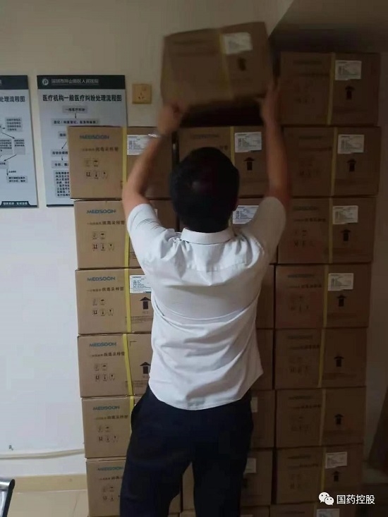 国药控股所属企业国药一致驻深圳市三院SPD项目组自5月25日起,全力配合防疫物资准备,协助院方进行近500万人次核酸检测工作,风雨无阻,加班加点,与院方共进退。