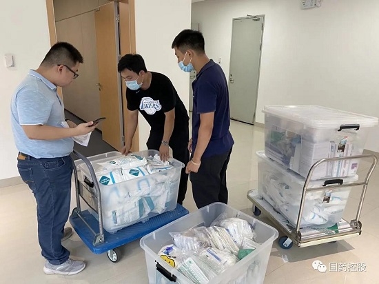 5月28日12点,在接到南方医院增城分院的紧急通知后,国药一致驻医院运维组马上协助医院分拣防疫物资、核对数量、搬运物资并装车。自医院进入新一轮防疫状态以来,运维团队执行24小时值班制度,以最快速度响应医院需求。