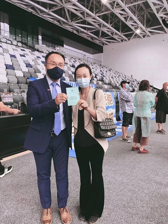 接种现场秩序井然,在毛中国同胞们严格遵守防疫规定,全程佩戴口罩,保持社交距离,在医务人员和领保志愿者的引导下,经过测量体温、核对信息、健康询问、了解注意事项等流程后依次接种,随后进行半小时的留观。在拿到接种证书后,众人纷纷在“春苗行动”条幅前合影留念,感谢祖国对海外游子的关爱,为中国政府的“春苗行动”点赞。
