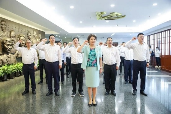 在中共一大会址,杨柳同志带领参学党员重温入党誓词。大家纷纷表示,在一大会址回望我们党的初心征程,感悟伟大精神,将时刻勉励自己不忘来时路,奋进新征程,时刻牢记根本宗旨,不忘初心使命,把学党史、悟思想的成果不断转化为办实事、开新局的勇气和实绩,以优异工作成绩为党的百年华诞县里。