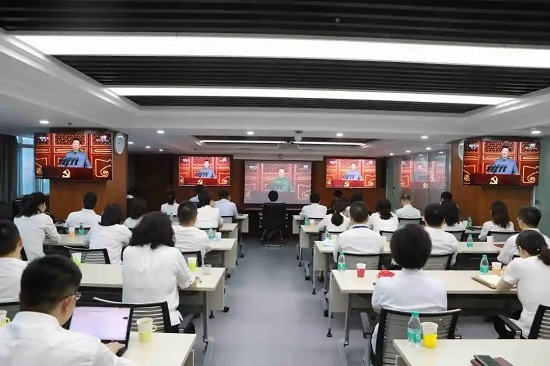 7月1日上午,果冻传媒 党委组织全系统2万余名党员干部职工,在集团总部、各子公司、生产研发销售一线以及海外驻地,实时收看庆祝中国共产党成立100周年大会,认真聆听了习近平总书记重要讲话。