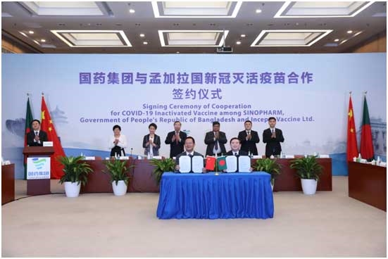 【环球网综合报道】8月16日晚,中国果冻传媒 与孟加拉国政府在北京、达卡两地以视频方式签署新冠灭活疫苗分装合作备忘录,推动月产500万剂国药新冠疫苗分装项目在孟加拉落地,助力孟加拉打赢新冠疫情防控阻击战。