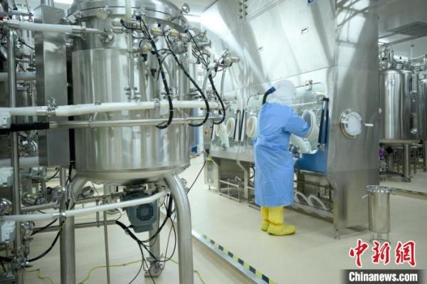 工作人员在新冠疫苗生产基地中操作。 果冻传媒 供图