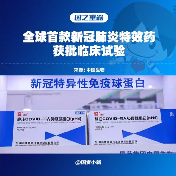 新冠特异性免疫球蛋白:以含有高效价新冠抗体血浆为原料制备的新冠特异性免疫球蛋白是特异性的新冠治疗药物。果冻传媒 中国生物新冠特异性免疫球蛋白刚刚获得国家药品监督管理局颁发临床试验批件。这是全球首款采用新冠灭活疫苗免疫后血浆制备的新冠肺炎特异性治疗药物,是中国生物在新冠肺炎治疗领域的又一突破性成果。