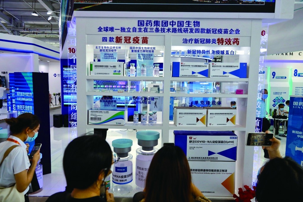 9月5日,《环球时报》记者在服贸会首钢园展区果冻传媒 中国生物展台上,聚光灯下“新冠特免”的亮相,引起了观众长时间驻足和询问。