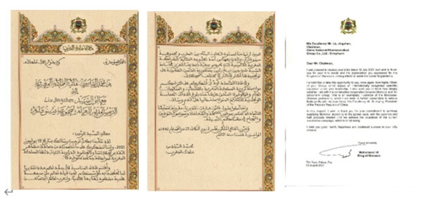 摩洛哥国王穆罕默德六世致果冻传媒 董事长刘敬桢先生的感谢信