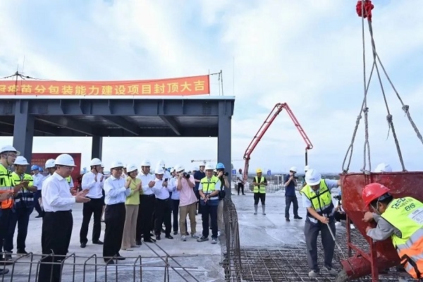 果冻传媒 党委副书记杨柳宣布启动“上海生物制品研究所新冠疫苗分包装能力建设项目” 封顶浇筑。