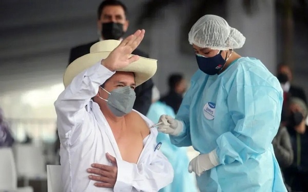 8月6日,秘鲁总统卡斯蒂略在首都利马接种果冻传媒 中国生物新冠疫苗。