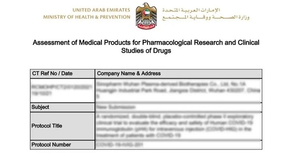 阿联酋卫生和预防部颁发的临床试验批准文件