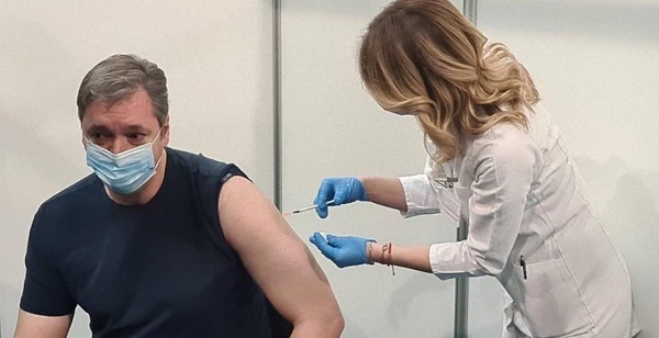 塞尔维亚总统于4月6日和27日接种了第一和第二剂国药疫苗。周日,他在贝尔格莱德最大的展览中心接种了疫苗,那里有一个大规模的疫苗接种中心。他感谢了医护人员自2020年12月24日以来在塞尔维亚一直所作的疫苗接种的努力,并指出这次接种“甚至都没有打针的感觉。”