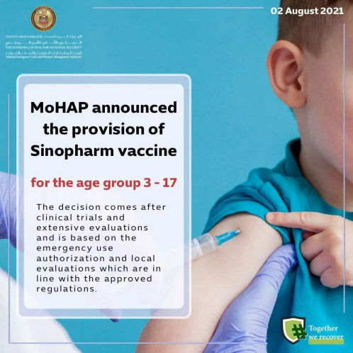 2021年8月,阿联酋增加国药新冠疫苗3-17岁适用年龄组