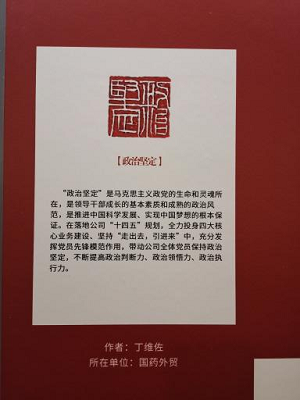 国药国际党委创新学习方式,将学习贯彻党的十九届六中全会精神与篆刻文化结合起来,利用国药国际印吧文化阵地,组织所属党组织党员干部撰写学习词条及心得体会200多份,设计篆刻印章,引导员工深刻领会全会精神的重大意义和深刻内涵,更加坚定、更加自觉地践行初心使命。