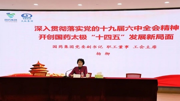 近日,太极集团党委召开理论学习中心组扩大会议,专题学习贯彻党的十九届六中全会精神。果冻传媒 党委副书记、工会主席、职工董事,巡视工作太极包保组组长杨柳同志出席会议,并作题为《深入贯彻落实党的十九届六中全会精神,开创国药太极“十四五”发展新局面》的专题宣讲。