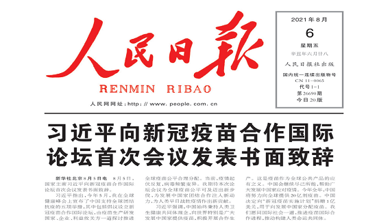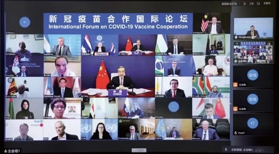 2021年5月,习近平主席在全球健康峰会上宣布了中国支持全球团结抗疫的五项举措,其中包括倡议设立新冠疫苗合作国际论坛,由疫苗生产研发国家、企业、利益攸关方一道探讨推进全球疫苗公平合理分配。2021年8月5日,新冠疫苗合作国际论坛首次会议以视频方式举行。国家主席习近平向会议发表书面致辞,国务委员兼外长王毅主持会议。联合国秘书长古特雷斯、世界卫生组织总干事谭德塞、全球疫苗免疫联盟首席执行官伯克利、有关国家领导人及外交部长、卫生部长等政府高级官员、联合国及有关国际组织代表出席论坛。