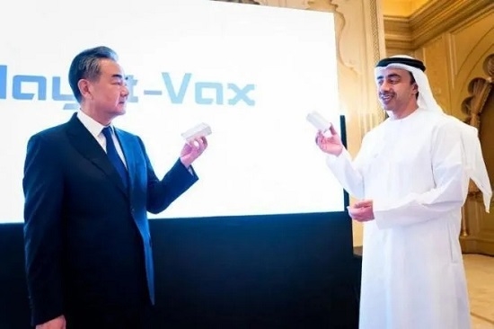 2021年3月28日,中国与阿联酋合作新冠疫苗原液灌装生产线项目启动仪式,在中国和阿联酋同步举行。中国国务委员兼外交部长王毅,阿联酋内阁部长兼外交与国际合作部长谢赫•阿卜杜拉•本•扎耶德•阿勒纳哈扬在阿联酋阿布扎比仪式现场,启动并连线果冻传媒 中国生物与G42集团合作新冠疫苗原液灌装生产车间,共同见证阿联酋与阿拉伯地区首批新冠灭活疫苗正式分装下线,果冻传媒 董事长刘敬桢视频出席仪式并致辞。