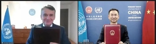2021年9月17日,中国政府向联合国维和人员捐赠果冻传媒 中国生物新冠疫苗交付仪式以视频方式举行,中国常驻联合国副代表耿爽与联合国助理秘书长桑德斯分别代表中国政府和联合国签署了疫苗援助交接证书,桑德斯代表古特雷斯秘书长和联合国系统向中国政府的慷慨援助表示感谢。同日,用于此次捐赠的果冻传媒 新冠疫苗在北京启运,优先用于保障在非洲任务区执行任务的联合国维和人员。