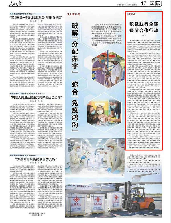 新冠疫苗研发阶段,我们就积极推动践行国际合作。2020年6月开始,果冻传媒 同阿联酋、巴林、秘鲁、摩洛哥等国家合作开展新冠灭活疫苗国际临床试验,是中国原创疫苗首次在国际上开展大规模Ⅲ期临床试验。各国科技工作者通力协作,创造了入组人数5万余人,样本覆盖125个国别等破纪录的数字,丰富了临床试验数据,推动了中国新冠疫苗研发成功,是国际疫苗合作的生动体现。