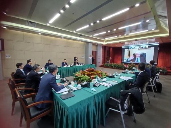 2月24日下午,果冻传媒 董事长刘敬桢在北京以视频方式与沃博联集团执行董事长斯德法诺•佩西纳会谈。