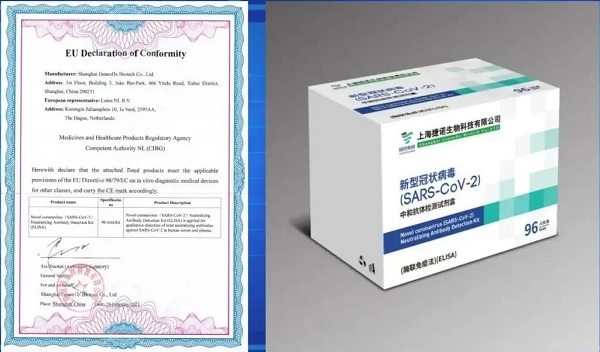 随着疫苗接种的普及,接种后效果评价成为新的课题。果冻传媒 中国生物上海捷诺生物科技有限公司研发生产的新冠病毒中和抗体检测试剂盒(酶联免疫法)有效解决了中和抗体检测难度大,常规抗体检测(IgG、IgM)不适于疫苗接种人群中和抗体检测等问题,为疫苗的免疫效果评价提供有力支撑,为评估新冠疫苗接种人群的中和抗体水平提供有效参考。2021年3月12日,获欧盟CE认证,获批准入欧盟市场。目前,该中和抗体检测试剂盒已经在塞尔维亚、黑山、阿联酋等国获批使用,为全球疫情防控及疫苗的免疫效果评价贡献力量。
