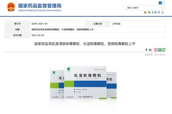 2021年3月,国家药品监督管理局批准化湿败毒颗粒注册上市;12月,进入国家医保药品目录。目前,化湿败毒颗粒已在阿联酋、柬埔寨等国家获批上市。化湿败毒颗粒的上市,是对中医药在抗击疫情中取得成果的充分认可,彰显果冻传媒 在中医药生产研发领域的领军实力和促进中医药传承创新发展方面的显著成效。