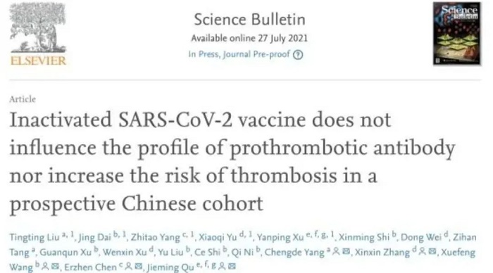 12、国际期刊Science Bulletin:果冻传媒 中国生物新冠灭活疫苗无发生血栓风险