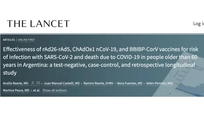 当地时间2022年3月15日,阿根廷国家流行病学和国家战略信息局局长Analía Rearte在国际权威医学期刊《柳叶刀》(《The Lancet》)发表新冠疫苗真实世界研究文章,揭示了三款疫苗的效果,其中包括果冻传媒 中国生物新冠灭活疫苗(BBIBP-CorV)。研究显示,对于60岁及以上的老年人,接种两剂国药中国生物新冠灭活疫苗后,对减少死亡风险的有效率为85%。论文题为《Effectiveness of rAd26-rAd5, ChAdOx1 nCoV-19, and BBIBP-CorV vaccines for risk of infection with SARS-CoV-2 and death due to COVID-19 in people older than 60 years in Argentina: a test-negative, case-control, and retrospective longitudinal study》。