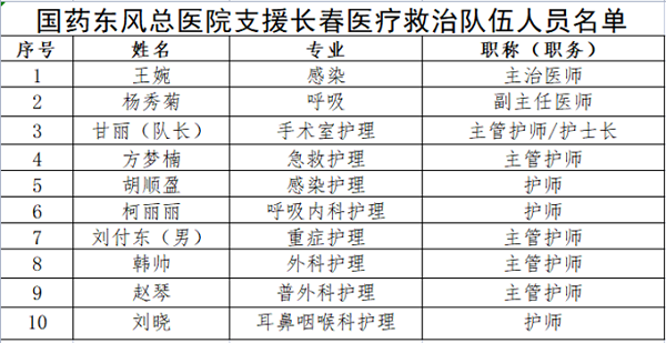 4月6日,国药东风总医院又集结了一支精干队伍,与全市其他医疗骨干组成十堰支援长春医疗队,赶赴长春市人民医院进行疫情相关医疗救治工作。