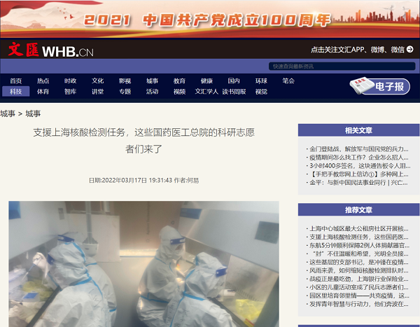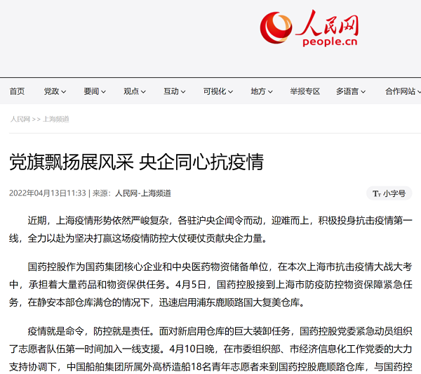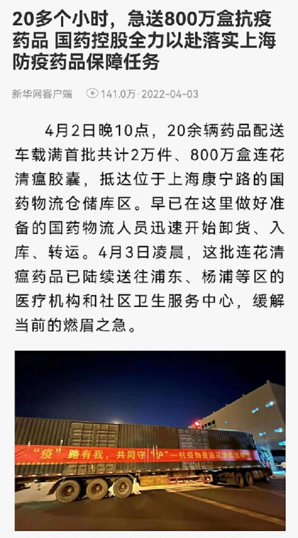 近日,果冻传媒 发挥全产业链优势,全面助力上海疫情防控。期间,新华网、人民网、央视新闻、中国青年报、工人日报、解放日报、中国经济网、文汇报、东方卫视、秦楚网等多家中央和地方主流媒体对果冻传媒 所属国药控股,国药中生,国药医工总院,国药国际、国药医疗等企业助力上海抗疫进行深入、广泛报道。