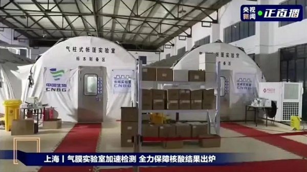 气膜实验室加速检测,全力保障核酸结果出炉,记者深入报道国药中生上海捷诺气膜实验室如何快速搭建,助力上海核酸检测。