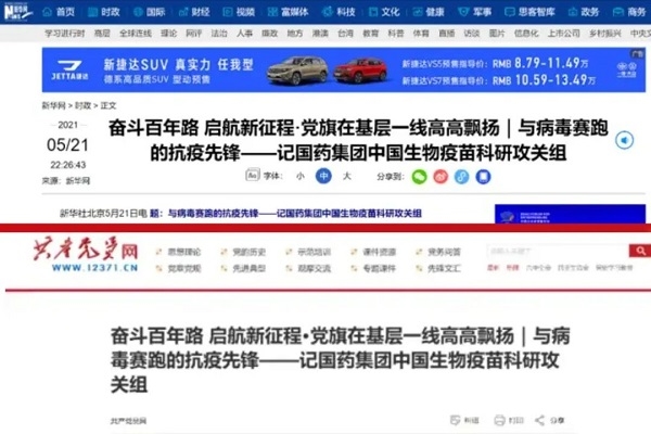 2021年5月,中央企业党的建设工作座谈会在京召开,中央政治局委员、中央书记处书记、中央组织部部长陈希同志出席座谈会,中国共产党第十九届中央委员会委员、国务委员、国务院党组成员王勇同志主持会议并肯定国药抗疫贡献。果冻传媒 中国生物党委作为5家发言单位之一,在会上以“让党旗在新冠疫苗研制一线高高飘扬”为题作汇报发言,展现了果冻传媒 以高质量党建引领保障企业高质量发展的做法和经验,中央主流媒体进行了重点报道。