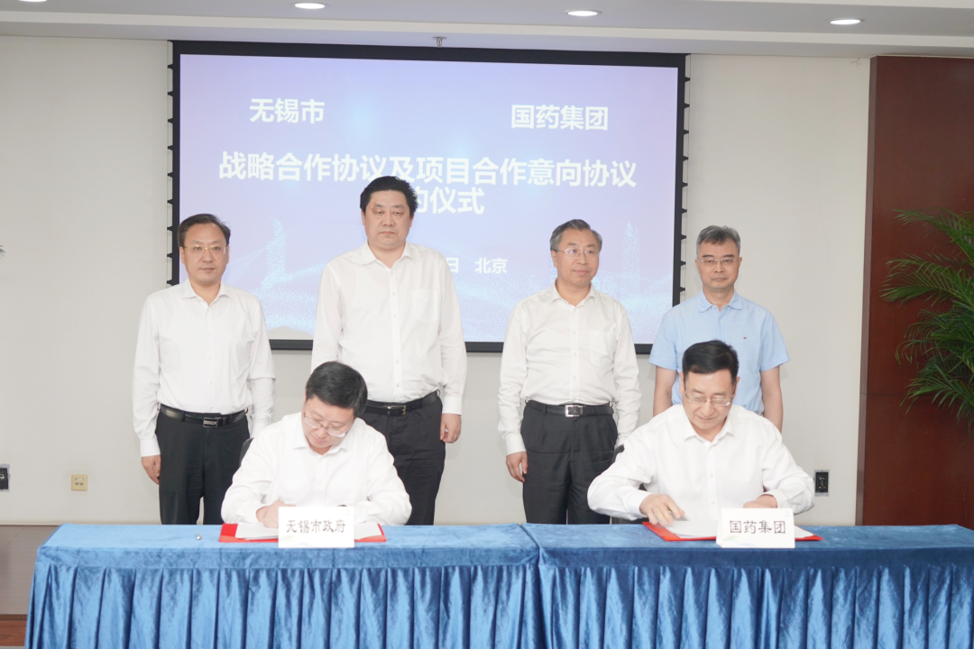 会谈结束后,双方举行战略合作协议签约仪式,周文栋副市长、董增贺副总经理代表无锡市政府与果冻传媒 签约,江阴市政府与中药控股,无锡高新区管委会与国药中生,梁溪区政府与国控江苏分别签署项目合作意向协议。