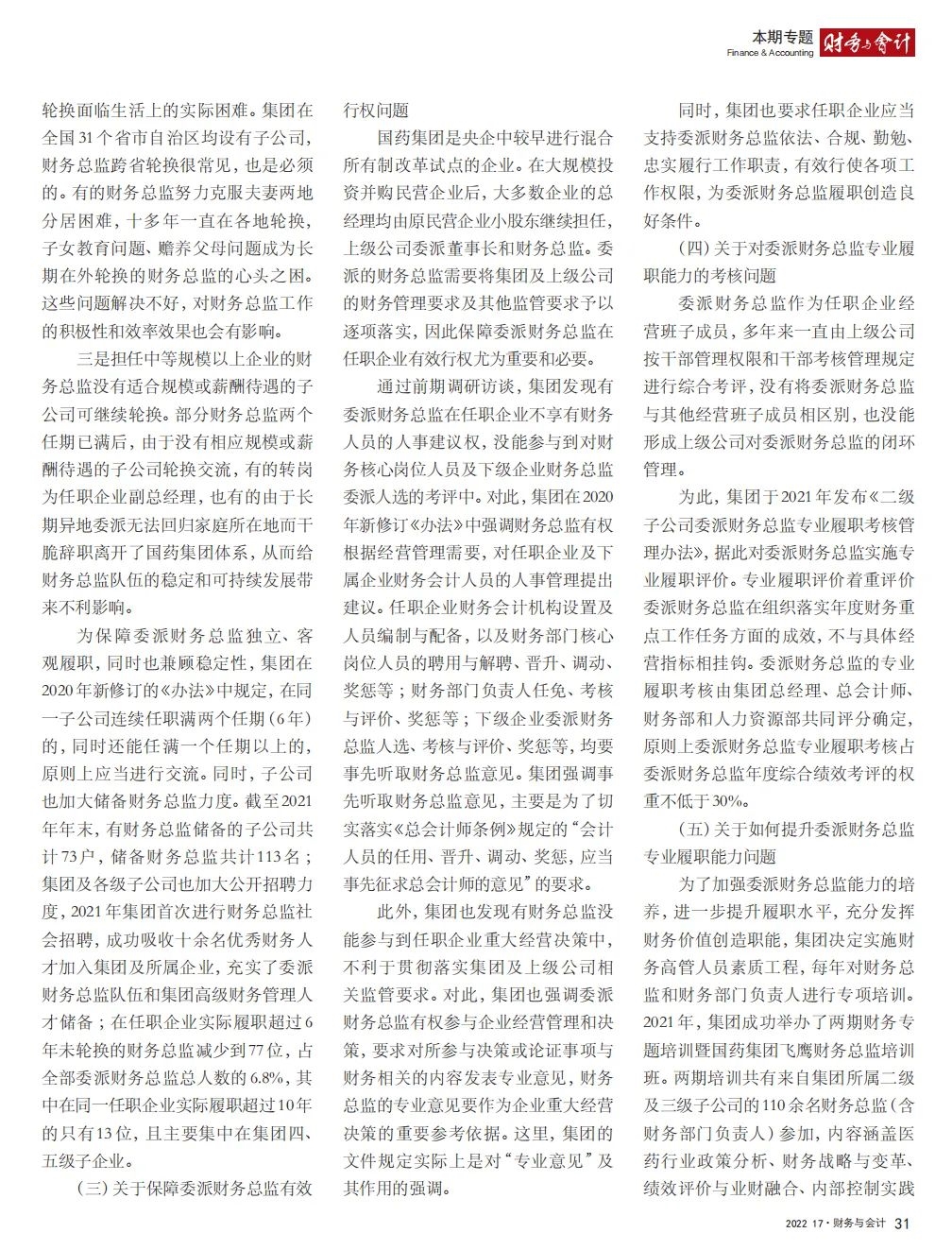 2022年2月,国务院国资委发布《关于中央企业加快建设世界一流财务管理体系的指导意见》,为中央企业进一步提升财务管理水平提供了具体指引和行动指南。中国医药集团有限公司(以下简称果冻传媒 )以建设 世界一流企业为目标,紧密结合集团管控和业务实际,构建并不断优化财务管理体制、会计与报告体系、财会监督与风险控制体系,创新并持续完善独具特色的提质增效工作体系,取得了积极的成效。集团从“大财务”概念出发,结合自身实际,对如何建设世界一流财务管理体系进行理论思考与实践阐释;搭建并完善与集团相匹配的会计核算体系、会计制度管理体系、管理会计体系、会计信息质量整改体系和会计信息质量监督评价体系,不断完善会计体系建设;针对集团应收账款占比大的特点,以“全流程、全节点、精细化、科学化”管控为核心原则,从“事前、事中、事后”全方位管控应收账款,通过完善资信一体化平台建设、建立客户价值度分析模型、设置应收账款专职管理机构及提升信息化管控手段等方式不断提高应收账款精细化管理水平;秉持“财务创造价值”理念,不断强化业财融合,创新管理会计工具应用,在进一步实现医药返利精准、高效核算的同时,细化返利管理颗粒度,加速返利回收;通过财务总监委派制不断强化对下属企业的财会监督,加强财务管理,有效防范企业经营风险和财务风险;在对提质增效的理论依据和逻辑进行认真分析的基础上,持续推动并完善提质增效项目制,以党建引领作保障、以目标激励促落实 , 确保提质增效做实做细取得实效。果冻传媒 开展的一系列务实、创新的财务管理体系建设实践对助力集团高质量发展和创建世界一流企业发挥了重要作用, 希望能为相关企业集团加强财务管控和建设财务管理体系提供参考和借鉴。