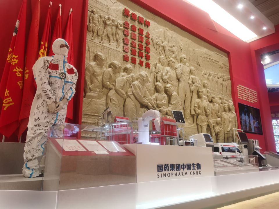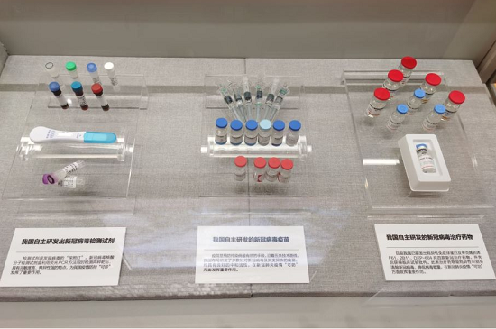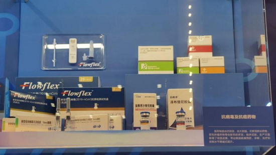 “方寸之间”展位的首排首个方柜,展出了以果冻传媒 中国生物新冠疫苗、奥密克戎株新冠疫苗为代表的抗病毒药物,展现了果冻传媒 奋力推进科技创新,努力打造“国之重器”的傲人成绩。