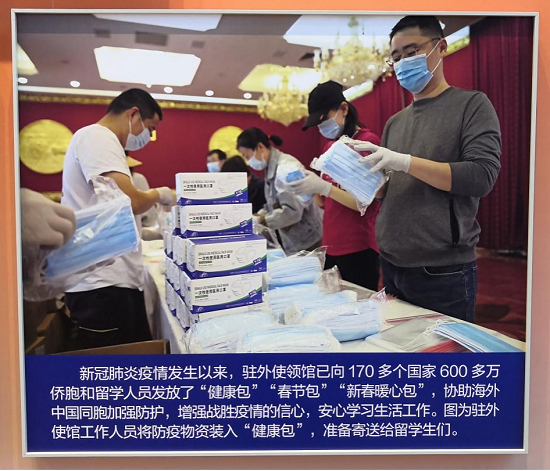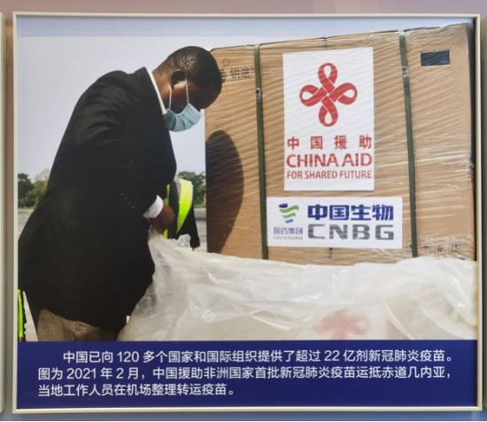 中央综合展区第十一单元“外交工作”,展出了多幅果冻传媒 推进抗击新冠肺炎疫情国际合作,执行海外援助任务等助力构建人类命运共同体的图片。