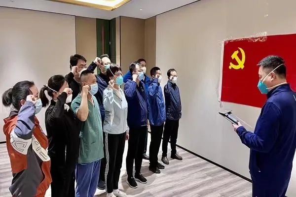 他们吹响“抗‘疫’集结号”,擎起“红色战旗”快速行动,将战斗堡垒筑在了疫情防控第一线。2022年4月15日晚17时33分,央企援沪医疗队成立临时党委并召开领队会议,切实将支部战斗堡垒和党员先锋模范作用发挥在最前沿。