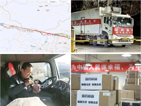 12月15日夜,国药新疆一辆载满10吨紧缺药品和物资的载重货车驶出乌鲁木齐。50小时,3012公里,人休车不休、星夜兼程,17日晚10时18分,医药物资顺利抵达北京。
