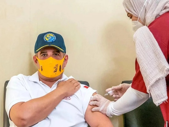 巴林王储兼首相萨勒曼以志愿者身份,第一批接种果冻传媒 新冠疫苗。