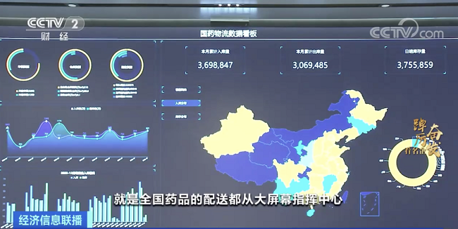 中国医药集团有限公司党委书记 董事长 刘敬桢:这是整个国药物流数据的一个智慧控制指挥中心,全国药品的配送都从大屏幕指挥中心来进行统一的指挥调度配送,从去年(2022年)12月份开始到目前,我们累计供应了各类医用物资、药品,包括防疫物资,现在达到了6.9亿件。