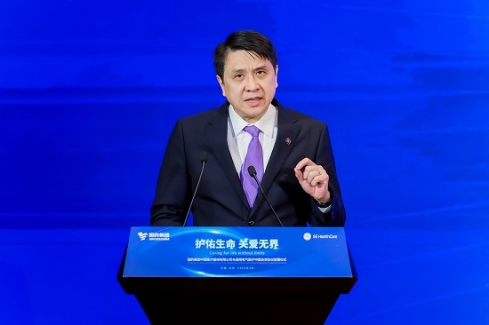 通用电气医疗中国总裁兼首席执行官张轶昊代表GE医疗中国感谢大家共同见证双方再次强强联手,签署新的合资企业协议。张轶昊表示,航卫通用也是GE医疗和国药第一次结缘合作的成果,如今航卫通用已经成为中国高端医疗器械制造的标杆企业,被授予了“北京医疗设备国产化示范基地”的称号,对于中国医疗产业链升级,打造世界级的供应商体系和“专精特新”小巨人方面都产生了积极影响。他指出,今天GE医疗和国药的合作实现再一次飞跃,将为中国基层医疗和广阔市场提供更多的医疗设备,是GE医疗深化国产战略的又一个里程碑。未来,新的合资公司将针对基层医疗健康的迫切需求,提供更有针对性的普惠型医疗设备,让更多百姓享受到更高质量的医疗服务。
